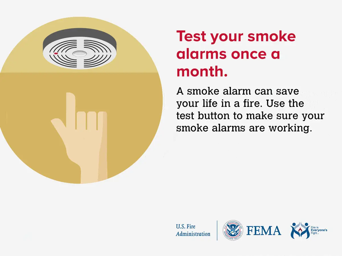 • Test your smoke alarms at least once a month. Press the test button to be sure the alarm is working.